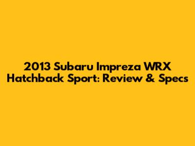 Hey guys! Today, we're diving deep into the 2013 Subaru Impreza WRX Hatchback Sport, a car that's known for its performance, versatility, and sporty appeal. If you're a fan of hatchbacks that pack a punch, then you're in the right place. We'll cover everything from its engine and performance to its interior, exterior, and overall driving experience. So, buckle up and let's get started!