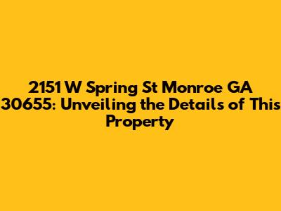 Hey guys! Let's dive deep into everything you need to know about the property located at 2151 W Spring St, Monroe, GA 30655. Whether you're a prospective buyer, a curious neighbor, or just doing some real estate homework, we’ve got you covered. This article provides a comprehensive overview, ensuring you have all the essential information at your fingertips. From its location and neighborhood vibe to property specifics and nearby amenities, we’re leaving no stone unturned. Stick around, and let's explore what makes this address tick!