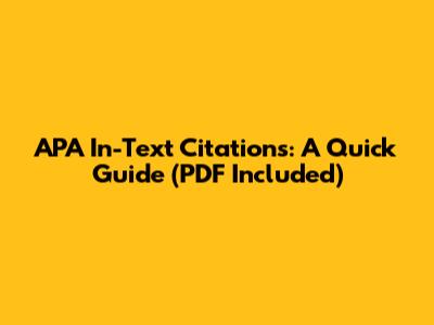 Hey guys! Ever feel lost in the world of APA in-text citations? You're not alone! It’s a crucial part of academic writing, but let's face it, it can be a bit confusing. This guide breaks down everything you need to know about APA in-text citations, and we’ve even got a handy PDF for you to download and keep! Whether you're writing a research paper, an essay, or any other academic assignment, mastering APA style is super important. It not only gives credit where it's due but also adds a ton of credibility to your work. Think of it as showing your readers you've done your homework and you're serious about your research. So, let's dive in and make APA in-text citations a breeze! In this comprehensive guide, we'll cover all the essential aspects of APA in-text citations, from the basic format to specific examples for different types of sources. We'll also provide tips and tricks to help you avoid common mistakes and ensure your citations are always on point. Plus, we've included a downloadable PDF that you can use as a quick reference guide whenever you need it. Let's get started and make your academic writing shine! Understanding APA style is key to effective communication in academic settings. It ensures clarity, consistency, and proper attribution of sources, which are all vital for maintaining academic integrity. By following the guidelines outlined in this guide, you'll be well-equipped to handle any citation challenge that comes your way. So, grab your favorite beverage, settle in, and let's conquer the world of APA in-text citations together!