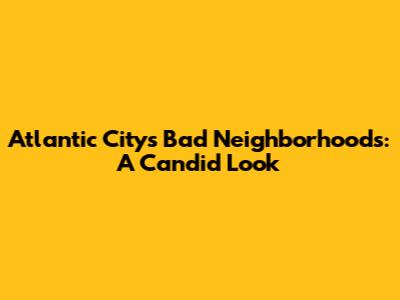 Atlantic City's Bad Neighborhoods: A Candid Look