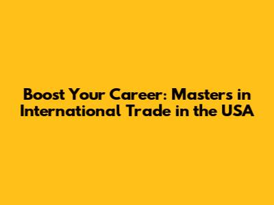 Boost Your Career: Master's In International Trade In The USA