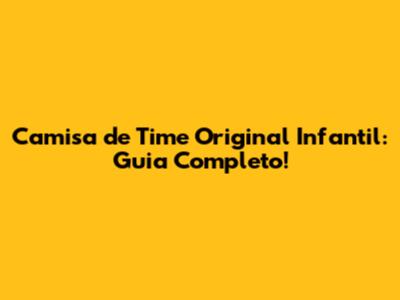 Camisa De Time Original Infantil: Guia Completo!