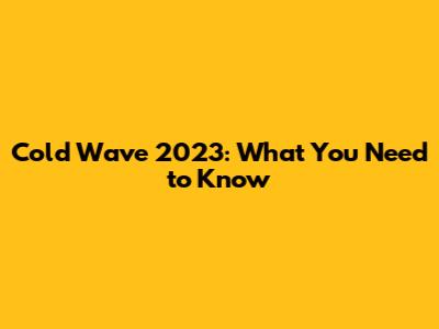 Cold Wave 2023: What You Need To Know
