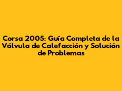 Corsa 2005: Guía Completa De La Válvula De Calefacción Y Solución De Problemas