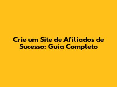 Crie Um Site De Afiliados De Sucesso: Guia Completo