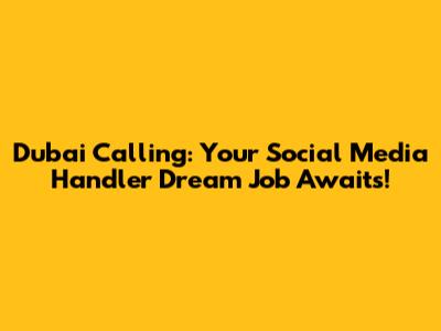 Dubai Calling: Your Social Media Handler Dream Job Awaits!
