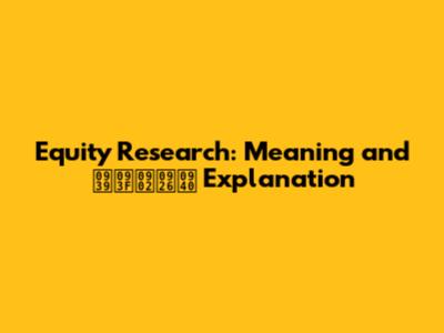 Equity Research: Meaning And हिंदी Explanation