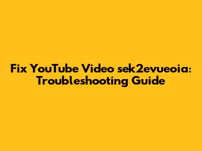 Fix YouTube Video Sek2evueoia: Troubleshooting Guide