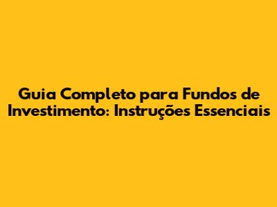 Guia Completo Para Fundos De Investimento: Instruções Essenciais