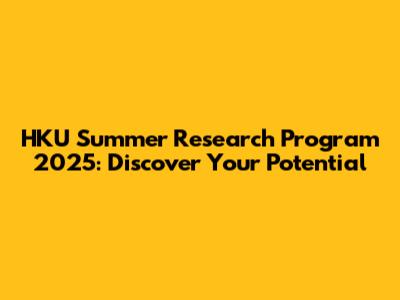 HKU Summer Research Program 2025: Discover Your Potential