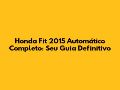 Honda Fit 2015 Automático Completo: Tudo Que Você Precisa Saber