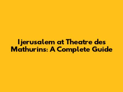 Ijerusalem At Theatre Des Mathurins: A Complete Guide