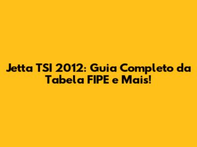 Jetta TSI 2012: Guia Completo Da Tabela FIPE E Mais!