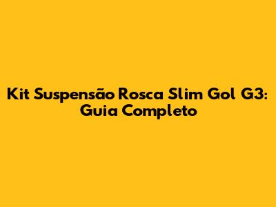 Kit Suspensão Rosca Slim Gol G3: Guia Completo