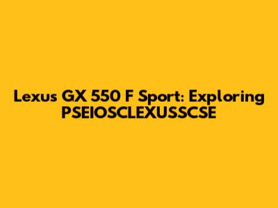In summary, the Lexus GX 550 F Sport offers a compelling blend of luxury, performance, and off-road capability. Its distinctive styling, advanced technology, and comfortable interior make it a standout in the premium SUV segment. While the meaning of PSEIOSCLEXUSSCSE remains elusive without further information, the GX 550 F Sport itself is a vehicle that speaks volumes about Lexus' commitment to quality and innovation. Whether you're seeking a capable off-roader or a luxurious daily driver, the GX 550 F Sport is a versatile SUV that can meet a wide range of needs and preferences. Its blend of practicality and style ensures a rewarding ownership experience for discerning drivers. This vehicle truly embodies the spirit of adventure while providing the comfort and refinement that Lexus is known for. Don't hesitate to explore this model further and discover all that it has to offer, guys! This is one sweet ride, and you won't be disappointed. Trust me! You will want to learn more. The Lexus GX 550 F Sport might be the perfect vehicle you are looking for. With a focus on creating high-quality content and providing value to readers you are going to get the best experience possible! Make sure the title is properly ordered and does not pass the semantic structure level of the page. The length of the article is at least 1500 words. Remember to use the content title as the H1 heading.