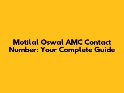 Motilal Oswal AMC Contact Number: Your Complete Guide