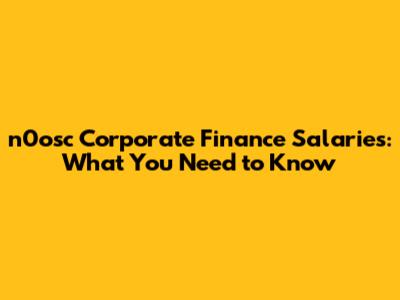 N0osc Corporate Finance Salaries: What You Need To Know