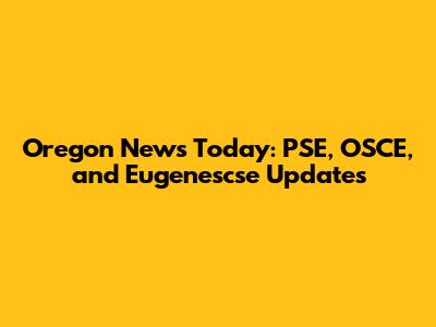 Oregon News Today: PSE, OSCE, And Eugenescse Updates