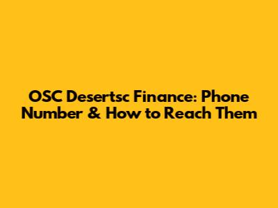 OSC Desertsc Finance: Phone Number & How To Reach Them
