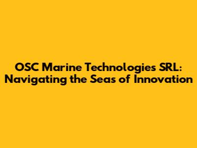 What Exactly Does OSC Marine Technologies SRL Do?