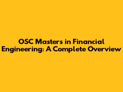 OSC Masters In Financial Engineering: A Complete Overview
