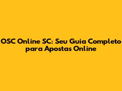 OSC Online SC: Seu Guia Completo Para Apostas Online