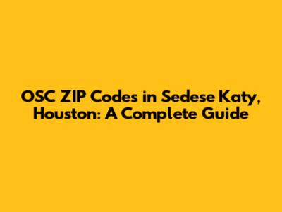 OSC ZIP Codes In Sedese Katy, Houston: A Complete Guide