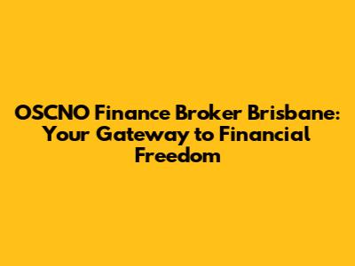 OSCNO Finance Broker Brisbane: Your Guide To Financial Success