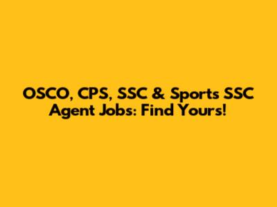 OSCO, CPS, SSC & Sports SSC Agent Jobs: Find Yours!