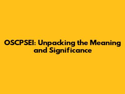 OSCPSEI: What Does It Mean And Why Does It Matter?