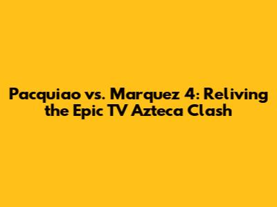 Hey fight fans, let's dive into one of the most unforgettable boxing showdowns in recent history: Manny Pacquiao vs. Juan Manuel Marquez IV, which was broadcast on TV Azteca! This wasn't just another fight; it was the culmination of a fierce rivalry that had captivated the world for years. If you're into boxing, you absolutely know the names, and you're probably already reliving the drama in your head. For those who might be newer to the sport or just need a refresher, this article is for you. We'll break down the history, the stakes, the broadcast details, and most importantly, the earth-shattering knockout that ended it all. Get ready to be transported back to that electrifying night, filled with anticipation, intense action, and of course, a little bit of heartbreak.