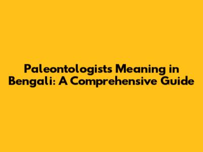 Paleontologists Meaning In Bengali: A Comprehensive Guide