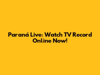 Paraná Live: Watch TV Record Online Now!