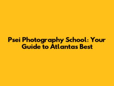Psei Photography School: Your Guide To Atlanta's Best
