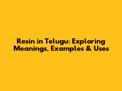 Resin In Telugu: Meanings, Examples & Uses