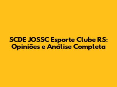 SCDE JOSSC Esporte Clube RS: Opiniões E Análise Completa