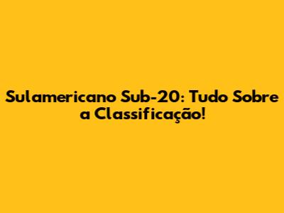 Sulamericano Sub-20: Tudo Sobre A Classificação!