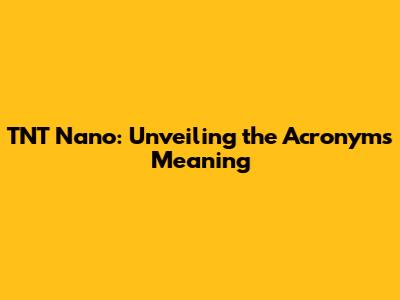 TNT Nano: Unveiling The Acronym's Meaning