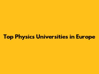 Top Physics Universities In Europe