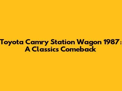 Toyota Camry Station Wagon 1987: A Classic's Comeback