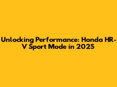 Unlocking Performance: Honda HR-V Sport Mode In 2025