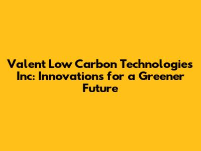 Valent Low Carbon Technologies Inc: Innovations For A Greener Future