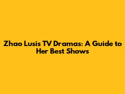 Zhao Lusi's TV Dramas: A Guide To Her Best Shows